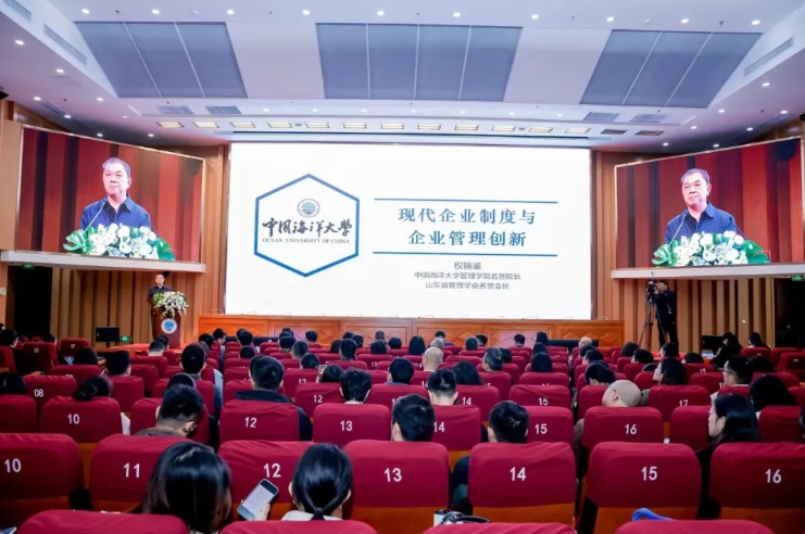 随后,成都清电易科技有限公司董事长屈东明分享了《企业从创业到发展壮大的管理模式探讨》,对创始人模式与经理人模式之间的差异与共性进行了深度解析;尚道控股有限公司董事长鲁汇智分享《智能时代:如何将AI融入企业战略与决策》,着重强调了人工智能技术在企业战略与决策过程中的关键作用;青岛华商智业企业咨询管理有限公司董事长刘春华在《新质生产力驱动下的MBA与战略新兴市场融合》的专题演讲中,深入剖析了企业跨界创新策略以及新时代跨界融合呈现的五大特征。在三位校外导师的演讲之后,管理学院副院长李志刚借助生动的企业案例,深入阐释了《裂变创业、跨界融合、大中小企业协同发展》这一核心议题,他强调,企业层面要善于讲述企业故事,员工要努力成为能扛得起责任、放得下私利、容得下委屈、守得住底线的“四得”新时代人才。