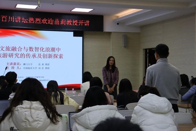 整场讲座内容丰富精彩,苗教授不仅提供了关于旅游研究的独到见解,也分享了个人的研究经历和学术探索过程,为听众带来了一场思想的盛宴。她的演讲激励着年轻学者在学术研究中不断追求卓越,勇于创新。讲座在热烈的掌声中圆满结束。