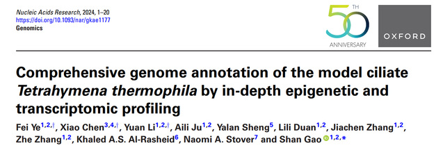 1.Sheng,Y., Duan,L., Cheng,T., Qiao,Y. and Gao,S. (2020) The completed macronuclear genome of a model ciliate Tetrahymena thermophila and its application in genome scrambling and copy number analyses. Sci. China Life Sci., 63, 1534–1542.