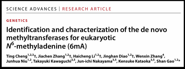 18. Sheng, Y., Wang, Y., Yang, W., Wang, X.Q., Lu, J., Pan, B., Nan, B., Liu, Y., Ye, F., Li, C., Song, J., Dou, Y., Gao, S., and Liu, Y., Semiconservative transmission of DNA N6-adenine methylation in a unicellular eukaryote. Genome Research, 2024. 34(5): 740-756.