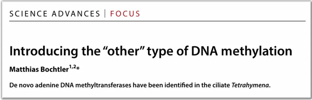 Science Advances同期发表由波兰分子和细胞生物学研究所Matthias Bochtler教授为该研究撰写的题为Introducing the “other” type of DNA methylation的聚焦评论。Bochtler教授肯定了该研究选择纤毛虫研究DNA甲基化的优势,提出了从头甲基化和维持甲基化过程对腺嘌呤和胞嘧啶上甲基化修饰的必要性。从DNA甲基化酶的组成讨论了四膜虫与高等真核生物的甲基化系统之间的显著相似性,并进一步讨论了纤毛虫为何会选择建立一种基于腺嘌呤甲基化的表观遗传系统,以及6mA从头甲基化酶在高等真核生物中是否存在的可能性。