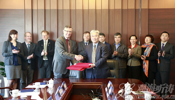 于志刚校长和Olsen校长共同签署两校合作备忘录及合作建立国际海洋分子生物联合研究中心备忘录 4月19日上午,挪威卑尔根大学校长Dag Rune Olsen博士率团访问开云电竞网址。校长于志刚在崂山校区会见了挪威客人。双方就两校合作事宜进行了深入交流,并签署了合作备忘录。 通讯员:刘岳 图:冯文波