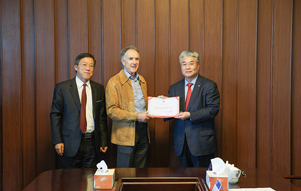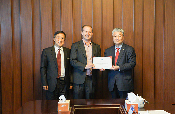 于志刚校长(右一)向Randolph教授颁发聘书