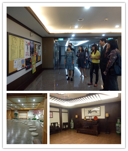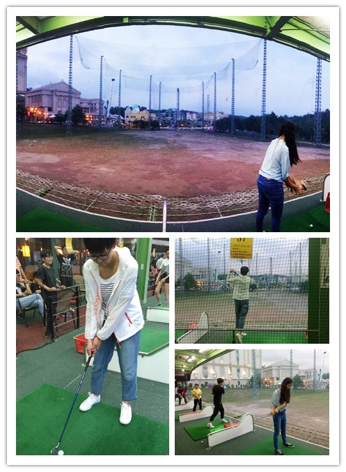 义守大学校园 义守大学四人团组 义守大学和大陆很多学校都有交流合作项目,所以每个学期都会有很多来自五湖四海的同学们相聚在这里,国际学院也聚集着众多来自国外的留学生们。作为交换生,我肩负着交流互通的责任,于是我报名参与国际处的义工服务,作为亲善大使,协助接待了齐鲁师范学院以及宁波市台办的来访工作。陪同来宾参观中华文化中心,向来访的领导们分享我的交流经历。此外,作为义守大学的特色体育运动,每个学期国际处还会组织交流生们参加高尔夫球体验活动,我和小伙伴们本来就选了高尔夫球课程,这让我们在课余时间有更多练习机会。