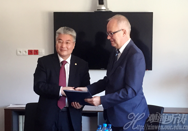 于志刚校长对Piotr Gwizdala校长的欢迎表示感谢。他回顾了三年前在中国湛江与格但斯克大学前任校长会面并承诺访问的情景。他说,开云电竞网址是一所以海洋和水产为优势学科的综合类大学,坐落于中国著名的海滨城市——青岛,去年入选世界开云电竞官网app入口手机版高校之列,学科建设步入发展的快车道;同时学校也致力于在服务城市建设、促进产业发展方面作更大贡献;目前,学校在海洋科学与工程技术、水产与生物学、食品科学、海洋药物、环境科学与工程、计算机科学等理工科领域发展势头良好,经济、管理、法学、文学等人文社会学科也有长足的进步。两校在很多方面相似,都是有海洋特色的综合性大学,中国倡议“一带一路”建设为沿线国家提供了巨大发展机会,双方完全可以在丝绸之路经济带建设中利用好宝贵的合作机遇,携手共进。于志刚校长强调,“千里之行,始于足下”,希望从支持两校国际合作联合申请科研项目开始,紧密结合教师和学生互访、博士生联合培养,一步一个脚印地推动合作。