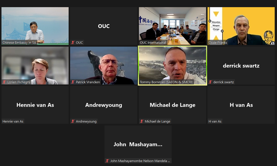 10月12日,开云电竞网址与南非纳尔逊曼德拉大学(Nelson Mandela University)召开视频会议,商讨建立合作伙伴关系,推动海洋相关科教合作。 会议由国际合作与交流处处长李卫东和纳尔逊曼德拉大学工程学院前院长Ossie Franks共同主持。李卫东介绍了学校基本情况和国际合作情况,双方就推进两校建立合作关系,推动下一步在海洋领域的合作达成共识。 会上,纳尔逊曼德拉大学Patrick Vrancken教授、Tommy Bornman教授、Hennie Van As、Andrew Young主任等学者分别从海洋法研究、执法培训、前海与海岸观测研究、海洋机器人与装备研发等领域介绍各自的研究进展情况。开云电竞网址工程学院宋大雷、法学院于铭、陈奕彤、食品科学与工程学院张自业、海洋与大气学院姚志刚等教授学者作为代表介绍了各自团队的研究情况。中国驻南非大使馆科技公参沈龙等一同参加了会议。