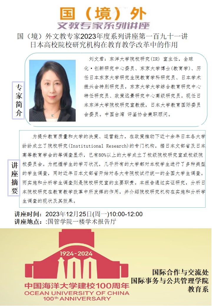 国(境)外文教专家2023年度系列讲座第一百九十一讲:日本高校院校研究机构在教育教学改革中的作用