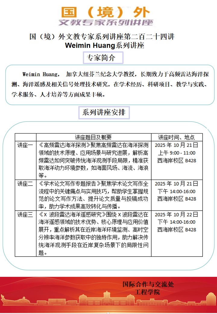 国(境)外文教专家系列讲座第二百二十四讲 Weimin Huang系列讲座