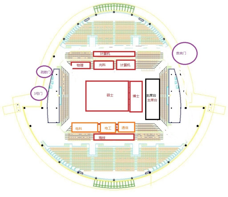 (1)参会毕业生以班级为单位12:50完成组队(凯旋广场),统一由体育馆3号门(1楼)入场,并按照分配区域(附件1)就坐;