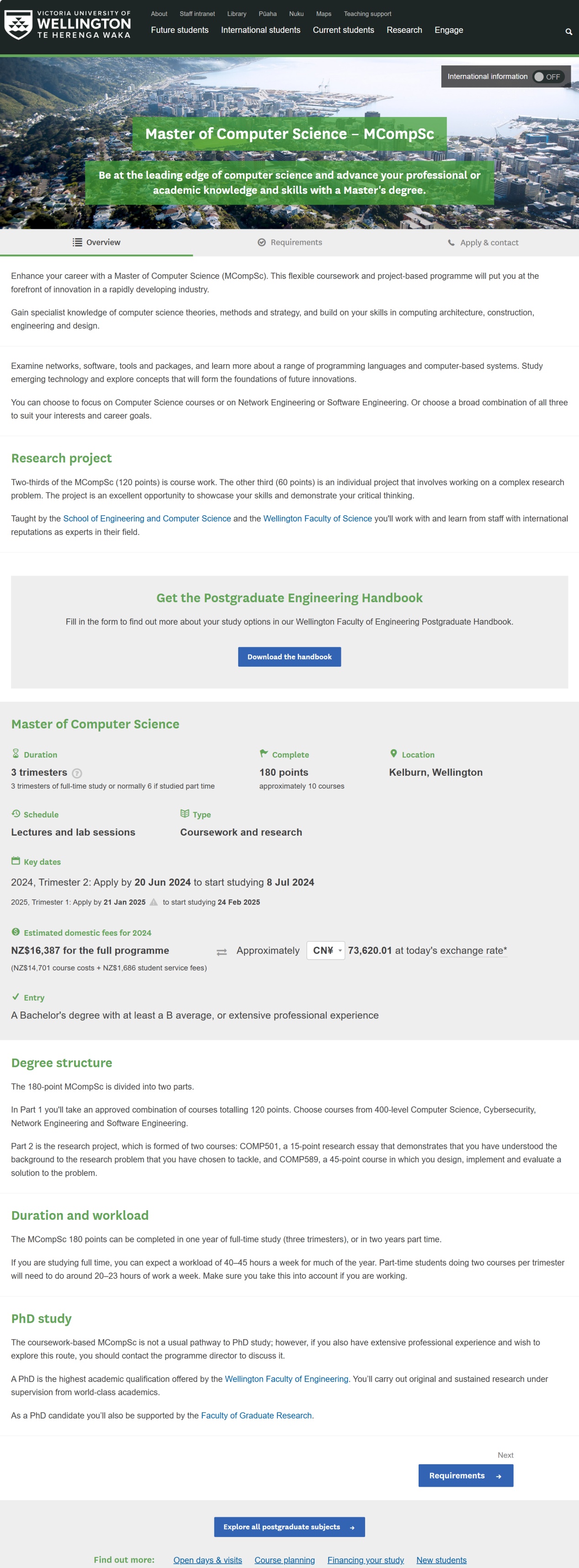 通过本项目录取的硕士研究生,学制三年。第一年在我校学习课程;第二年前往新西兰惠灵顿维多利亚大学学习课程(英文授课),并在实验室实习,符合学位授予要求者将获得新西兰惠灵顿维多利亚大学硕士学位;第三年回到我校进行论文撰写及答辩,通过论文答辩者将获得开云电竞网址硕士研究生毕业证书,符合学位授予条件者经校学位评定委员会审核通过后授予学位,并获得相应学位证书。参加本项目的学生获得我校毕业证及学位证的要求与其他学生一致。