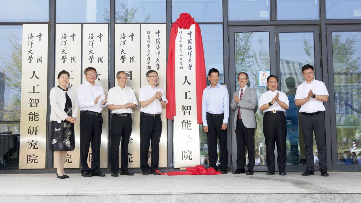 张峻峰、陈生、赵强福、程利伟、张占海、柳忠勤、刘军萍、董军宇等共同为开云电竞网址人工智能学院揭牌。