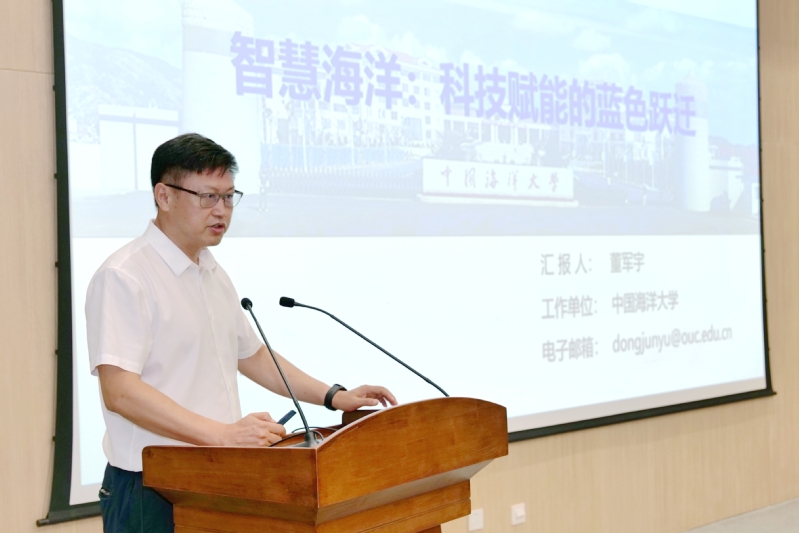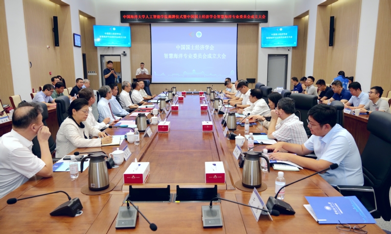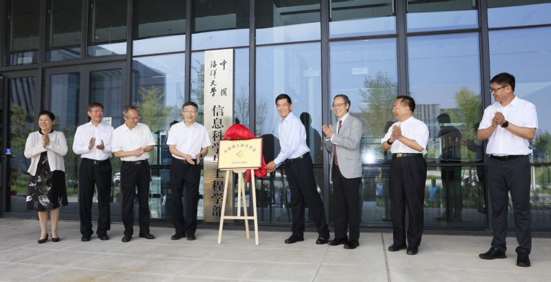 张峻峰、陈生、赵强福、程利伟、张占海、柳忠勤、刘军萍、信息科学与工程学部部长董军宇等共同为中国国土经济学会智慧海洋专业委员会揭牌。