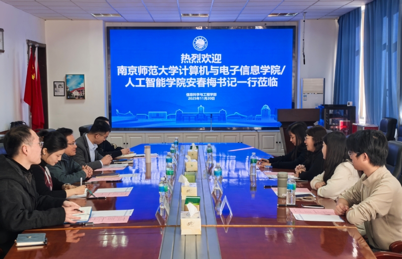 11月20日,南京师范大学计算机与电子信息学院/人工智能学院党委副书记安春梅率学工团队到访信息科学与工程学部(以下简称“学部”)开展“卓越研究生培养”主题调研交流。学部党委副书记、副部长宋青出席交流会并主持,团委副书记刘玮,研究生秘书张旺旺,辅导员吴正哲、张子扬参加交流。