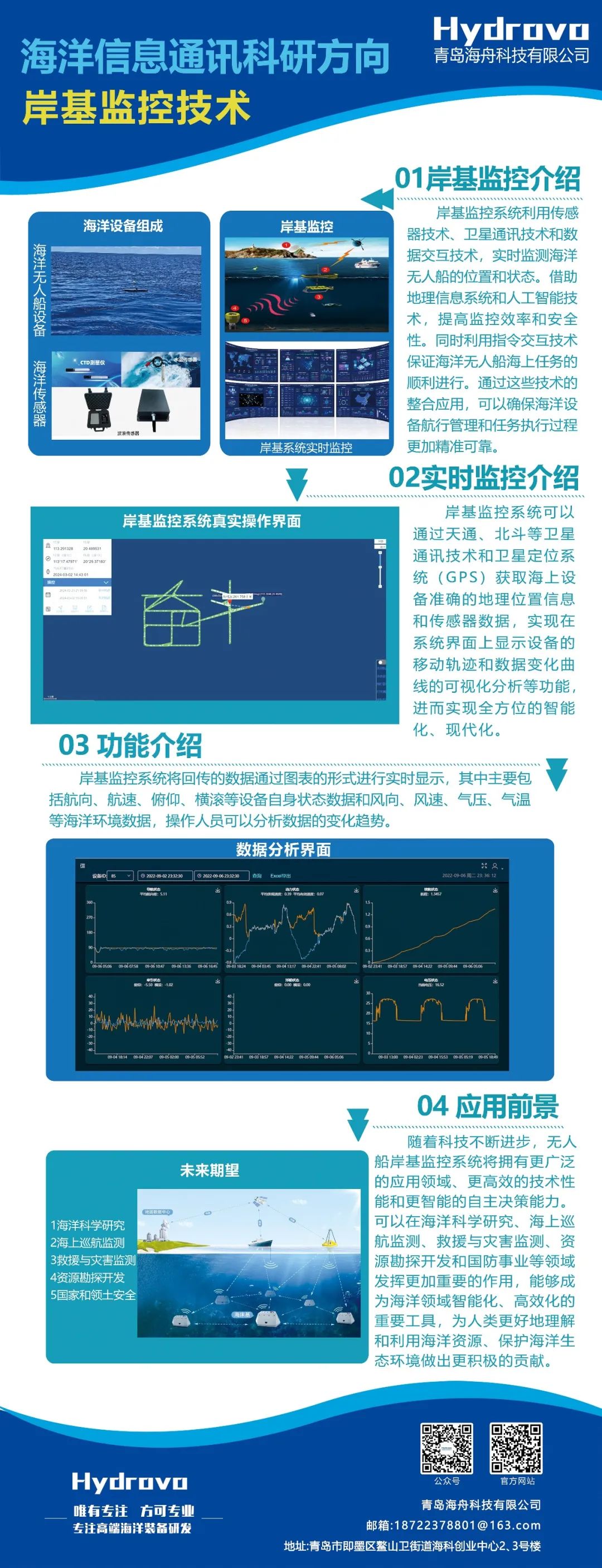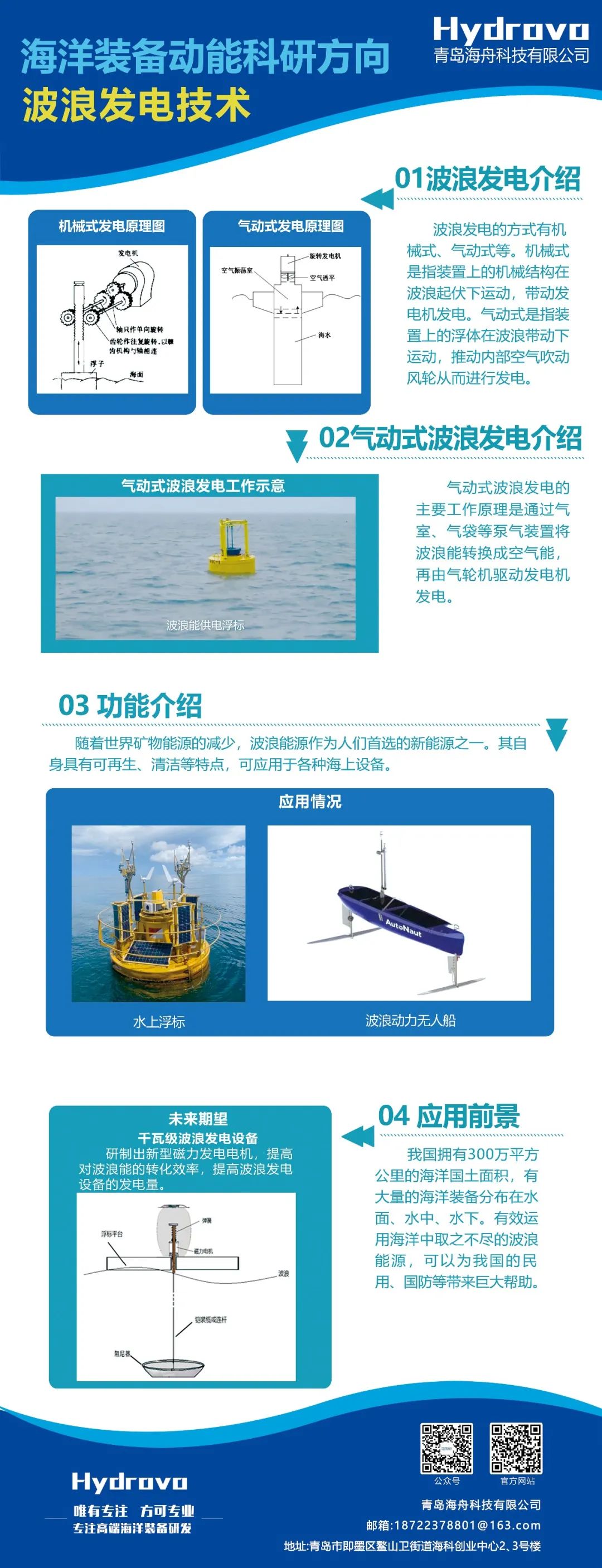 青岛海舟科技有限公司(简称“海舟”)于2018年成立,是国内首家专业从事全系列波浪滑翔器装备及相关核心部件研发、制造、销售、服务的海洋高科技企业。海舟拥有7000余平波浪滑翔器专用研发生产空间,具备较强的科研力量和丰富的教学资源。