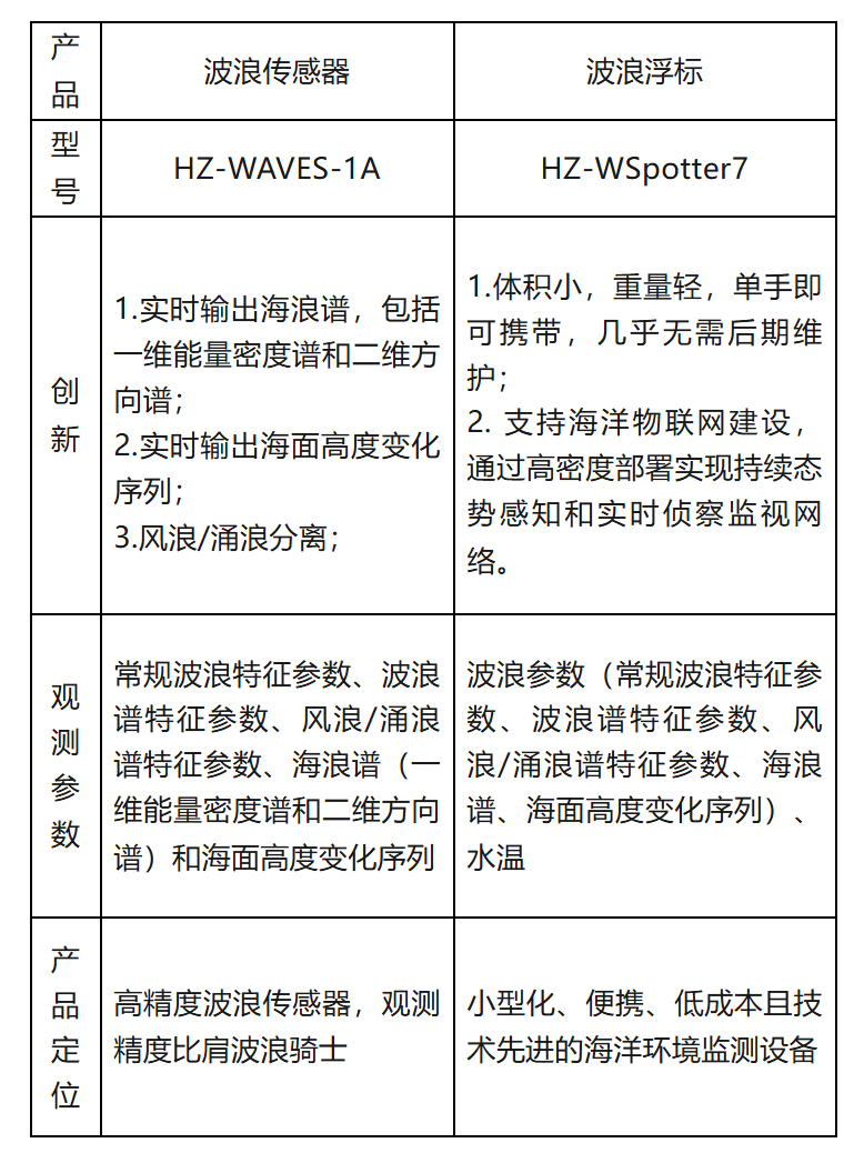 表1 波浪观测产品比对