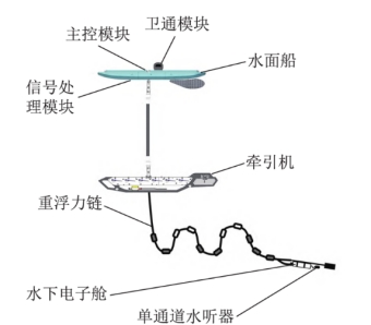 波浪滑翔机是一型利用波浪能驱动和太阳能供电的无人自主航行器,搭载拖曳式水听器或声学阵列可实现外海大洋长时间的海洋环境实况观测和动态目标实时探测。声信号作为水下信息传输的唯一有效载体,在海洋观探测领域有着不可替代的作用。
