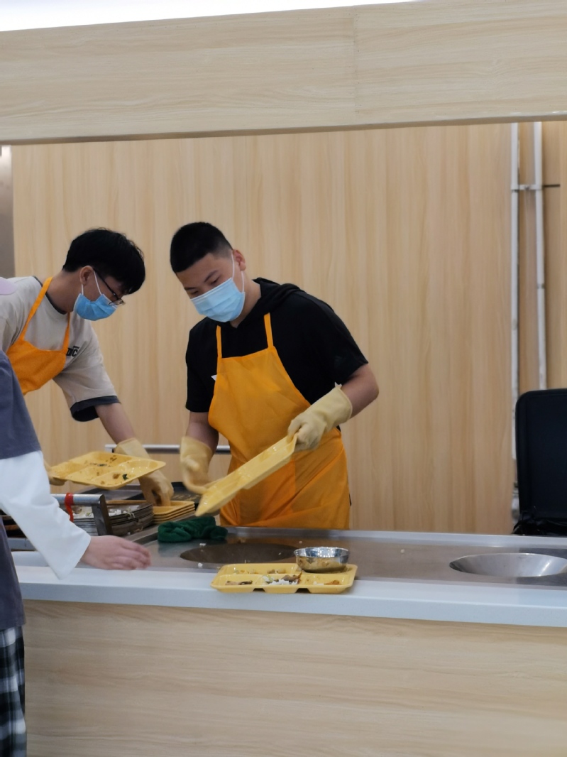 为了贯彻落实立德树人根本任务,进一步加强新时代劳动教育,引导大学生崇尚劳动、尊重劳动、热爱劳动,培养德智体美劳全面发展的时代新人,5月5日下午,信息科学与工程学部2020级计算机科学与技术(中外合作办学)2班开展了“爱在餐厅,你我同行”劳动教育主题实践,引导同学们在体验参与中树立正确劳动价值观,以实干展现青春风采,用服务践行青春担当。