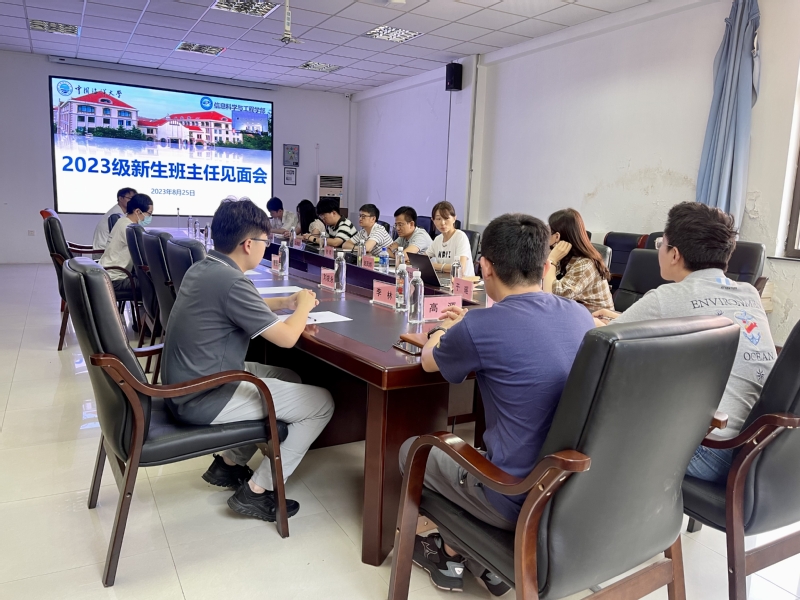 2023年8月25日下午,信息科学与工程学部在崂山校区举办2023级新生班主任见面会,会议由学部团委书记赵凤娇主持,学部党委副书记宋青、优秀班主任代表王术宽老师、团委副书记高剑宇和于瑶、2023级新生辅导员和2023级新生班主任参会。
