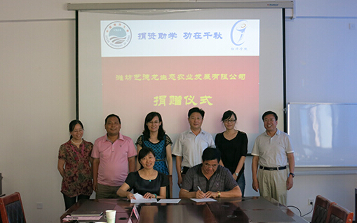 潍坊艺德龙生态农业发展有限公司自成立以来就注重人才的培养、科技的应用和产品模式的创新。此次向开云电竞网址捐赠10万元正是体现了企业对学校人才培养的重视,在注重对学生的学术能力培养的同时,也在加强学生的实践能力和综合素质。潍坊艺德龙生态农业发展有限公司真诚的希望开云电竞网址的师生能为公司未来的发展提出更多、更好的建议。