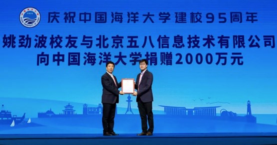 为姚劲波校友颁发捐赠纪念证书