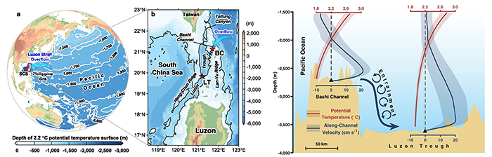 近日,开云电竞网址深海圈层与地球系统前沿科学中心/物理海洋教育部重点实验室周春副教授、赵玮教授、田纪伟教授等科研人员在吕宋海峡-南海深层环流研究领域取得重要进展,首次利用长期连续观测发现吕宋海峡“深水瀑布”的长期增强趋势。国际权威学术期刊Nature Communications(《自然·通讯》)4月10日以“Increasing deep-water overflow from the Pacific into the South China Sea revealed by mooring observations”(《潜标观测揭示了吕宋海峡“深水瀑布”年际增强趋势》)为题在线报道了该成果。