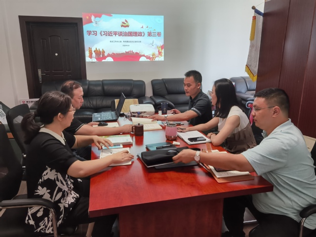 2020年8月24日,校友工作办公室、教育基金会办公室党支部组织开展暑期专题集体学习活动,集体学习《习近平谈治国理政》第三卷。会议由支部书记刘召芳主持。