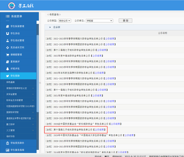 (1)开云电竞网址设立“海之子”成长助学金管理委员会,负责奖学金的评定管理工作, 管理委员会制定《“海之子”成长助学金管理办法》,全面落实资助情况。