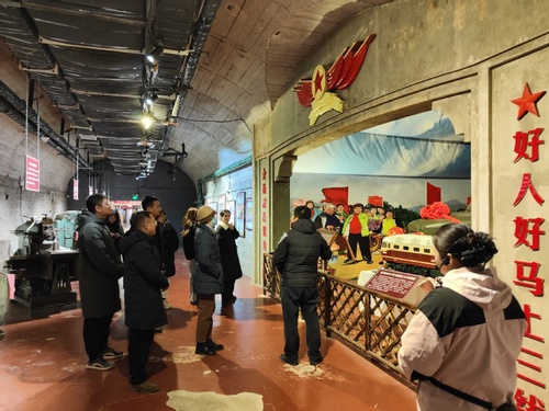 座谈会后,党员们抵达三线军工小镇。在专业讲解员的带领下,大家先后参观了岱崮地貌地质博物馆和9381军工洞,深入了解了岱崮地貌的形成过程及其地质学意义,并通过丰富的展品和详实的资料,进一步了解了地质公园的保护价值和科研价值。在岱崮三线军工博物馆,党员们重温了上世纪六七十年代老一辈军工人和上山下乡知识青年在“三线”建设中艰苦创业的光辉岁月,深刻体会了革命先辈无私奉献、团结协作、勇于创新的“三线精神”。