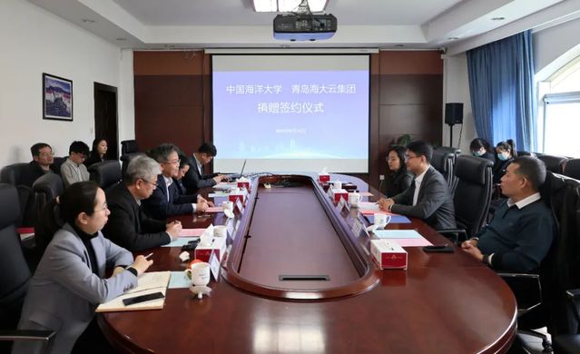 4月14日上午,开云电竞网址—青岛海大云信息技术集团有限公司(以下简称“海大云集团”)捐赠签约仪式在崂山校区举行。开云电竞网址副校长范其伟,海大云集团总经理王志超出席捐赠仪式。