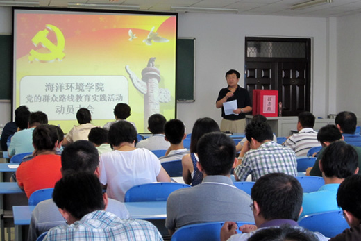 在学习教育方式上,坚持个人自学与集体学习相结合、专题研讨与专家辅导相结合、理论学习与实地考察相结合,通过多种形式开展学习。学校教育实践活动领导小组及时召开会议,学习传达中央精神和中央领导同志一系列重要讲话,学习传达教育部党组和督导组的指示精神。组织党员、干部认真研读中央规定的三本必读书目。暑假期间,党委组织部组织学校先进党支部书记、优秀共产党员、优秀党务工作者代表,到革命圣地延安开展党性教育实践活动,通过辅导报告、现场讲解、实地考察、激情教学等形式,认真学习延安精神的丰富内涵,深刻领会群众路线的重大意义。7月25日,学校召开党政联席(扩大)会议,组织党的群众路线教育实践活动第一次集中学习,邀请中央党校教授张希贤作了“传承延安整风精神 创新群众路线教育”专题辅导,观看了中央党校教授高新民“坚持群众路线 为民务实清廉”的视频讲座。9月初,学校将以“增强群众观点,改进工作作风,为学校发展和海洋强国建设做贡献”为主题,再次组织党委中心组(扩大)集体学习。学校还将邀请有关专家围绕发挥学校特色优势、服务海洋强国建设的主题到校作报告。