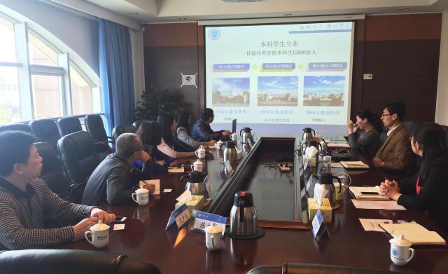2016年4月15日上午,汕头大学教务处常务副处长蔡映辉一行来我处调研,双方就实施学分制教学管理、课程资源建设情况、教务系统运行及对接、教学运行管理等方面展开了深入交流探讨。