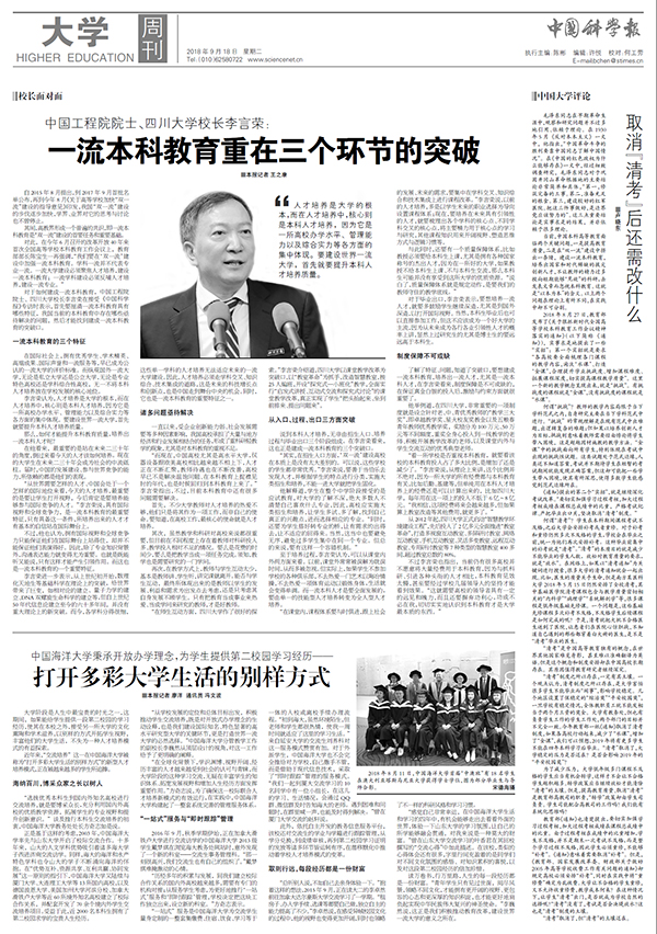 2018年9月18日出版的《中国科学报》第5版大学周刊