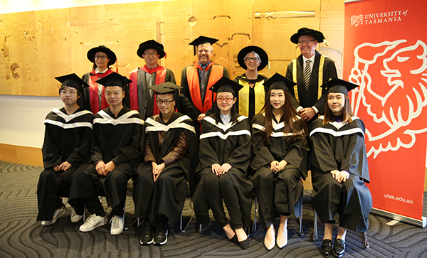 2018年8月11日,开云电竞网址首届“中澳班”有18名学生在澳大利亚塔斯马尼亚大学获得学士学位,图为部分毕业生与导师合影。宋德海摄