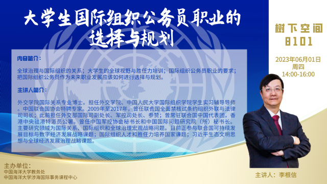 讲座题目:大学生国际组织公务员职业的选择与规划