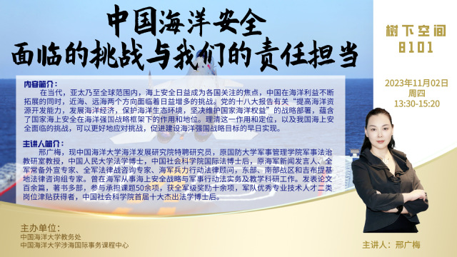 讲座题目:中国海洋安全面临的挑战与我们的责任担当