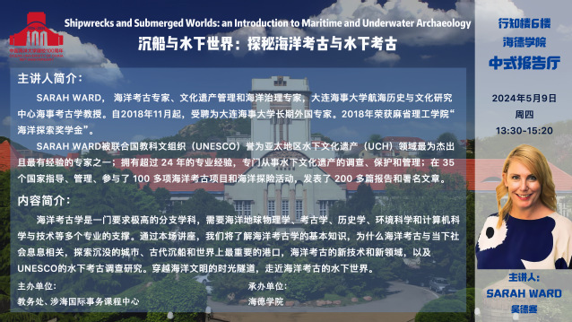 讲座主题:“Shipwrecks and Submerged Worlds: an Introduction to Maritime and Underwater Archaeology” 沉船与水下世界:探秘海洋考古与水下考古