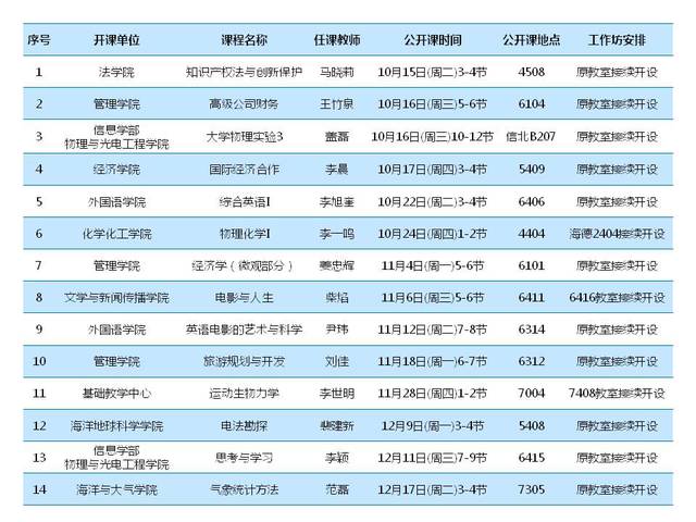 为发挥课程思政示范课程的示范引领作用,带动全校教师充分发掘课程思政元素,全面提升课程思政建设水平,学校定于2024-2026年开展“20-30-50计划”,每学期遴选部分课程思政示范课程讲授公开课、开设工作坊。本学期公开课及其工作坊安排如下,欢迎全校师生观摩交流!