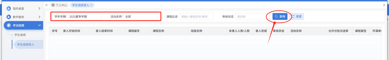 方法一:点击“学生成绩录入”快捷导航栏