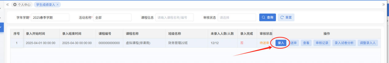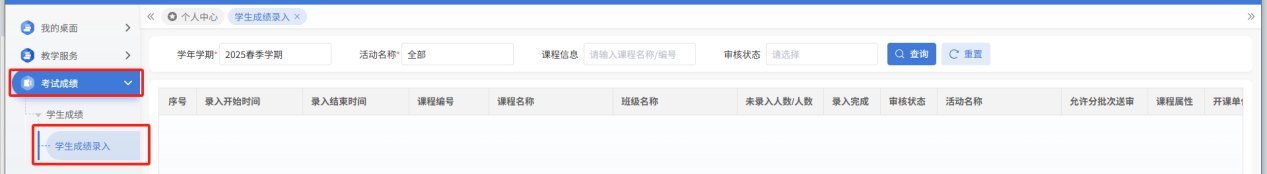 方法一:点击“学生成绩录入”快捷导航栏
