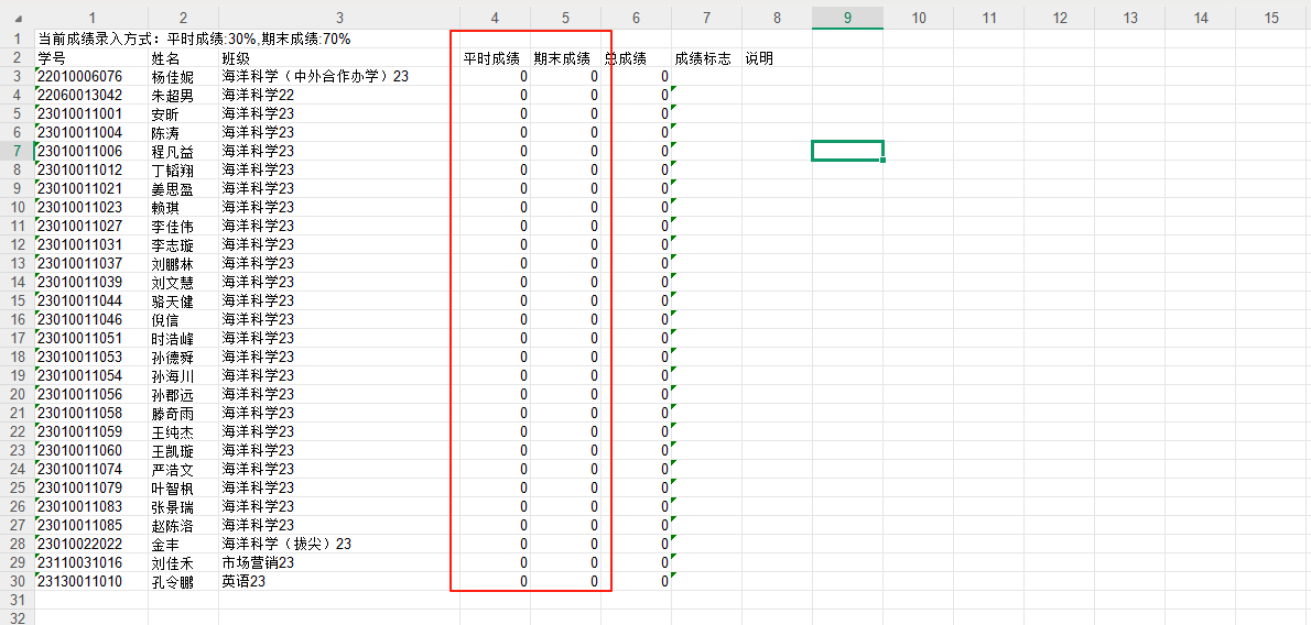1、重新设置各项成绩比例: