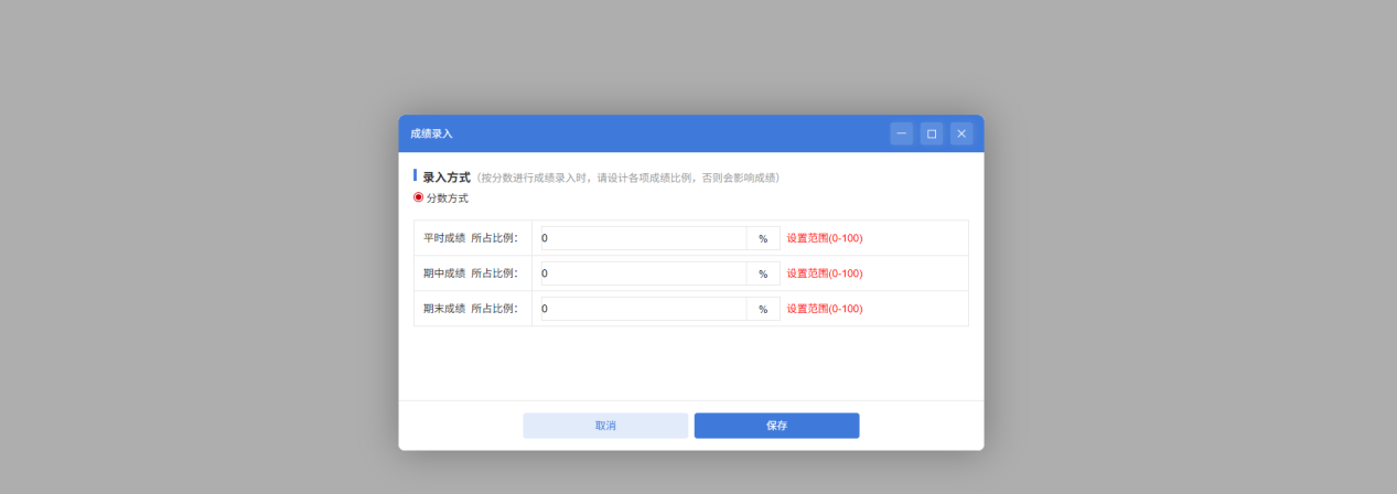 注:重新设置成绩比例会将已录入的成绩清空。