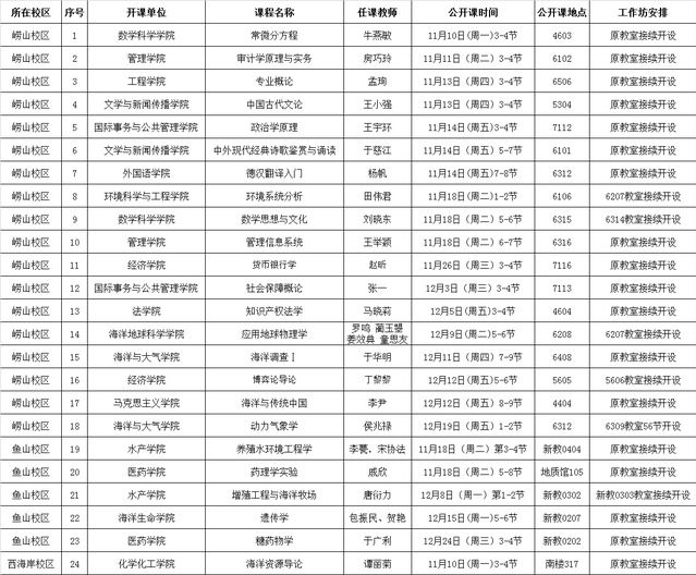 为发挥课程思政示范课程的示范引领作用,带动全校教师充分发掘课程思政元素,全面提升课程思政建设水平,学校定于2024-2026年开展“20-30-50计划”,每学期遴选部分校级课程思政示范课程讲授公开课、开设工作坊。本学期公开课及其工作坊安排如下,欢迎全校师生观摩交流!