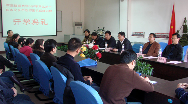 本站讯 12月25日下午,我校2007年第三期中职骨干教师国家级培训班开学典礼在崂山校区信息科学与工程学院会议室举行。校长助理徐天真出席典礼并讲话。我校职业教育师资培训中心主任武心尧主持典礼。