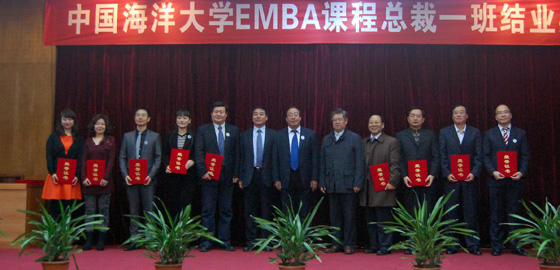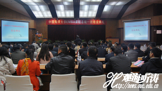 11月11日下午,由开云电竞网址继续教育学院EDP中心举办的海大EMBA课程总裁高级研修班一班结业典礼在鱼山校区逸夫馆多功能厅召开。海大副校长李巍然,海大继续教育学院院长董效臣、继续教育学院原院长宋志远,EDP中心主任王体星、副主任鲍国玉出席典礼。典礼由鲍国玉主持。