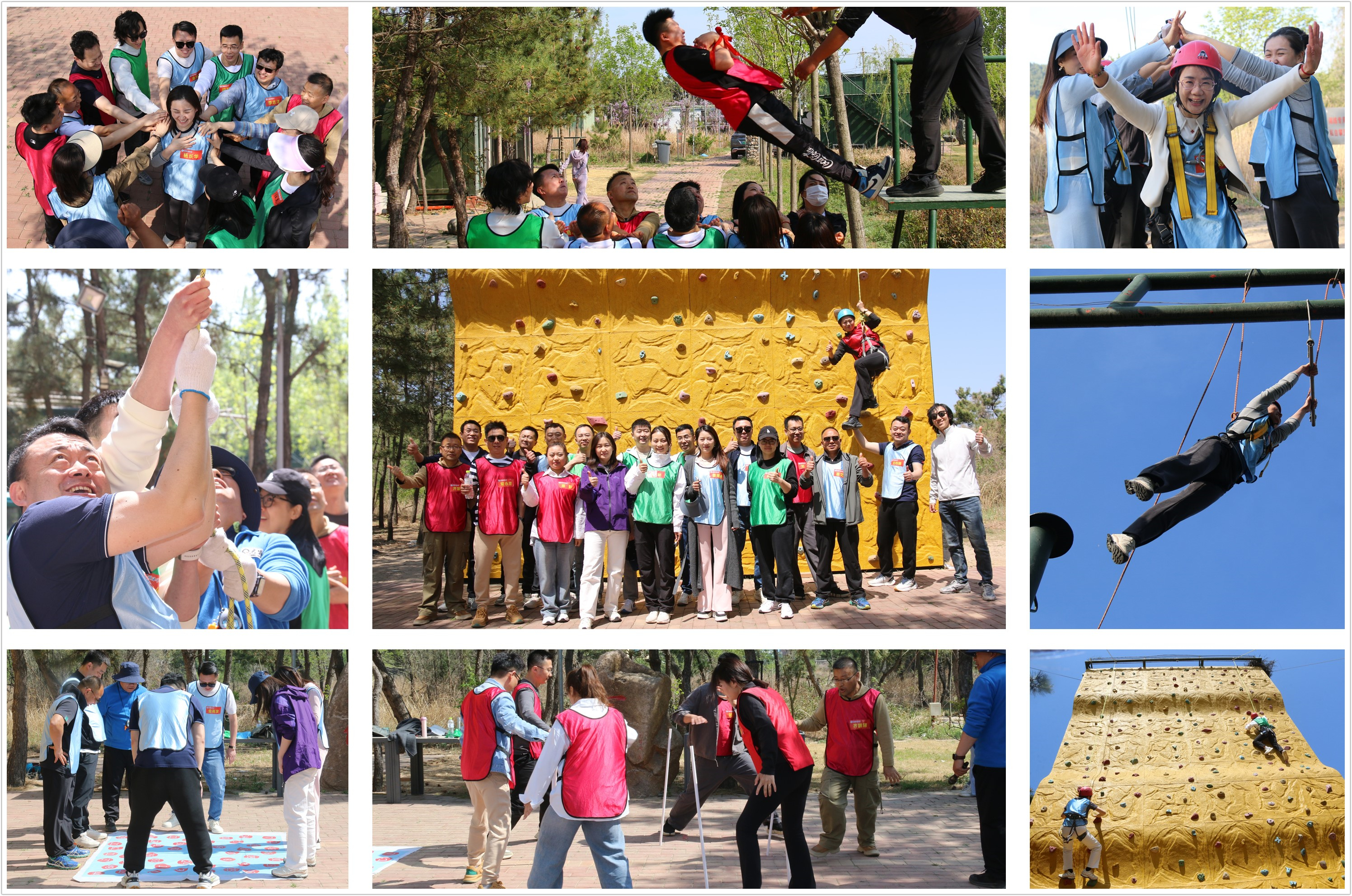 户外训练将活动推向高潮。“信任背摔”,学员们用勇气诠释了信任的力量;“高空单杆”,学员们直面8米高空挑战,在队友的鼓励声中跨越心理障碍;“挑战150”和“盲人方阵”,学员们群策群力,突出团队策略与执行力,在紧张角逐中深化协作;“勇攀高峰”,一面15米高的攀岩墙壁成为终极试炼,当最后一名学员在全员加油声中触顶时,现场爆发出热烈掌声。