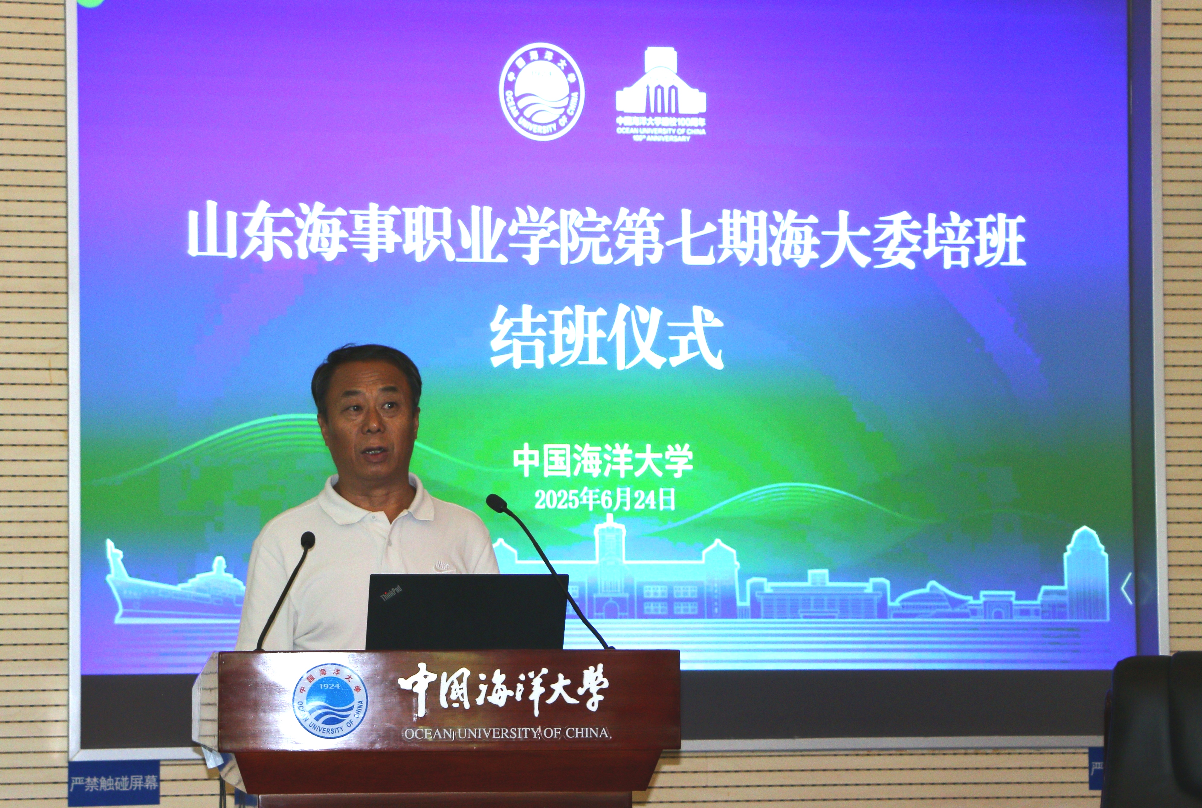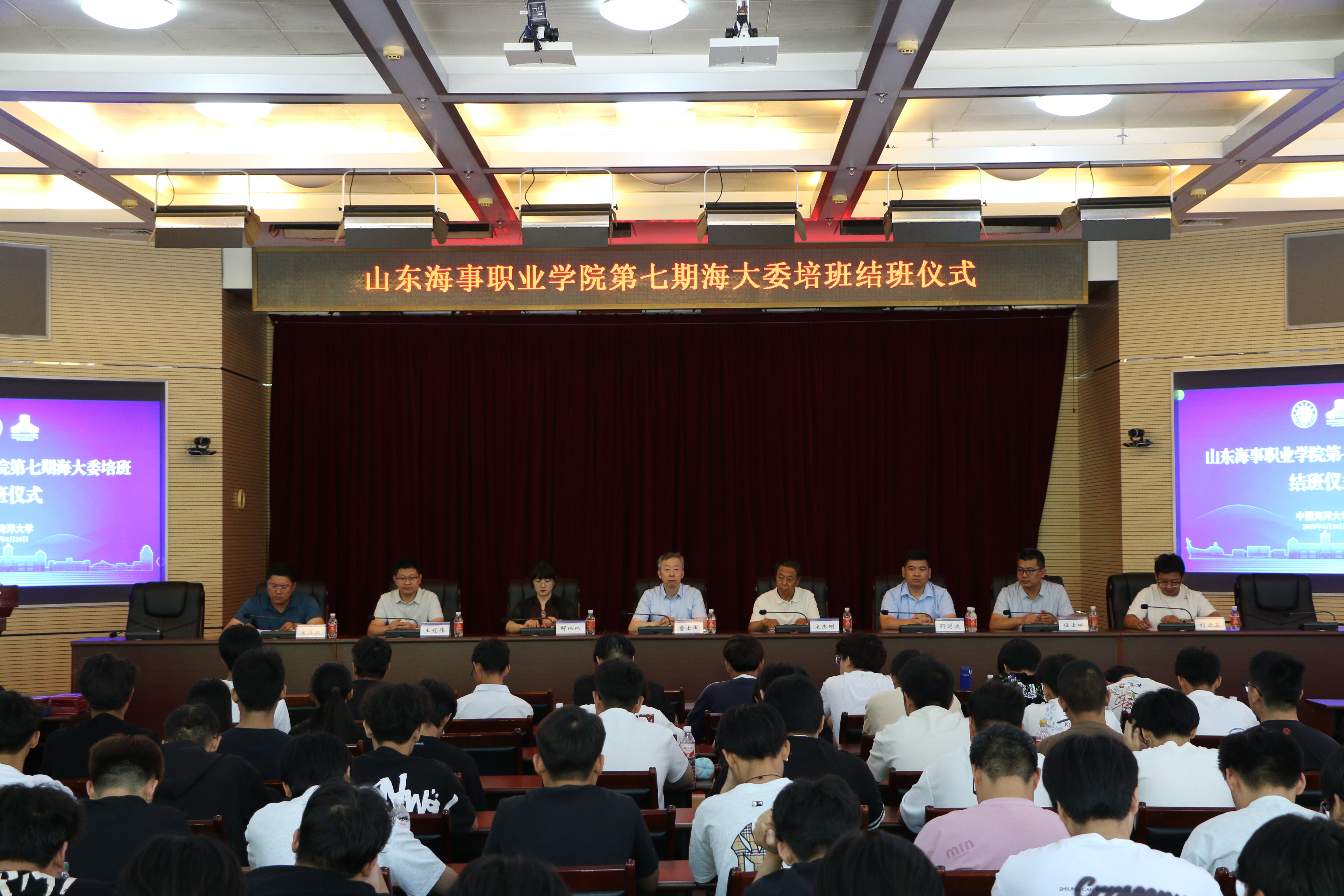 6月24日,山东海事职业学院第七期海大委培班结班仪式在开云电竞网址崂山校区举行。山东海事职业学院副校长宋志刚,开云电竞网址职业技术师范学院院长董士军、副院长解玮玮等出席仪式,培训部主任宋济汉主持仪式。