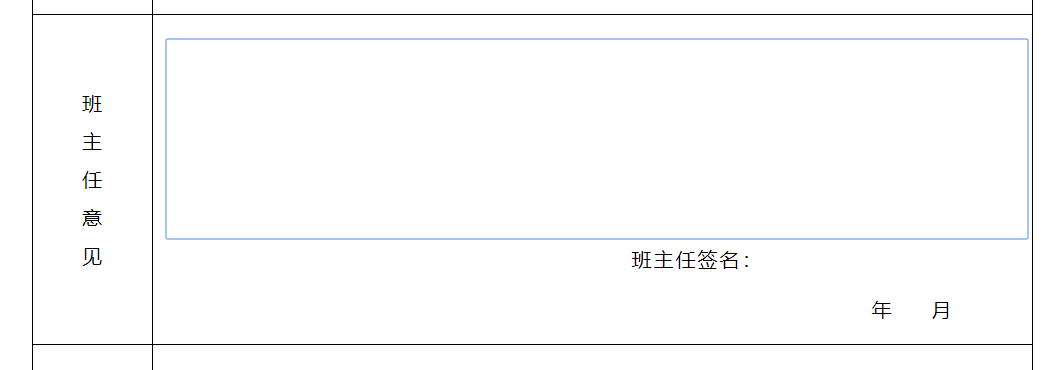 5、打印后由学生自己手写“自我鉴定”并签名,“班主任意见”下方需要班主任签名。