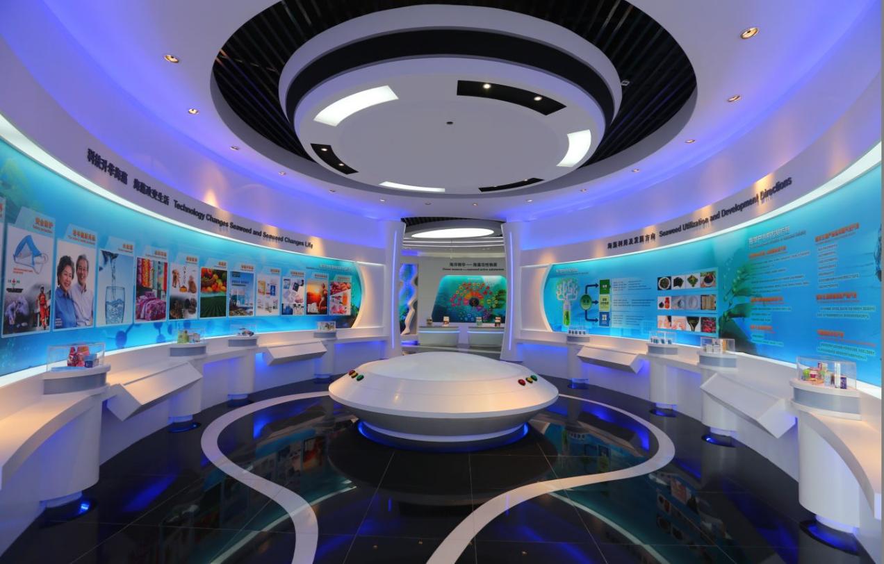 青岛明月海藻科技中心,位于美丽的黄海之滨,南依大珠山风景区,东邻古镇口军民融合创新示范区,北邻中铁·青岛博览城,总建筑面积2000多平方米,是全球首个以系统展示海藻生物文化和产业为主题,集海洋科普教育、海藻产业展示、健康休闲体验、旅游观赏娱乐于一体的综合现代化海洋科技展馆。科技馆功能区域划分为2大板块、7个展区。2大板块分别为海藻生物文化馆和海藻生物产业馆;7个展区分别是神秘海洋观感区、缤纷海藻展示区、古今中外交流区、海藻与生活互动区、明月时光展览区、海藻产业体验区、未来展望观影区。