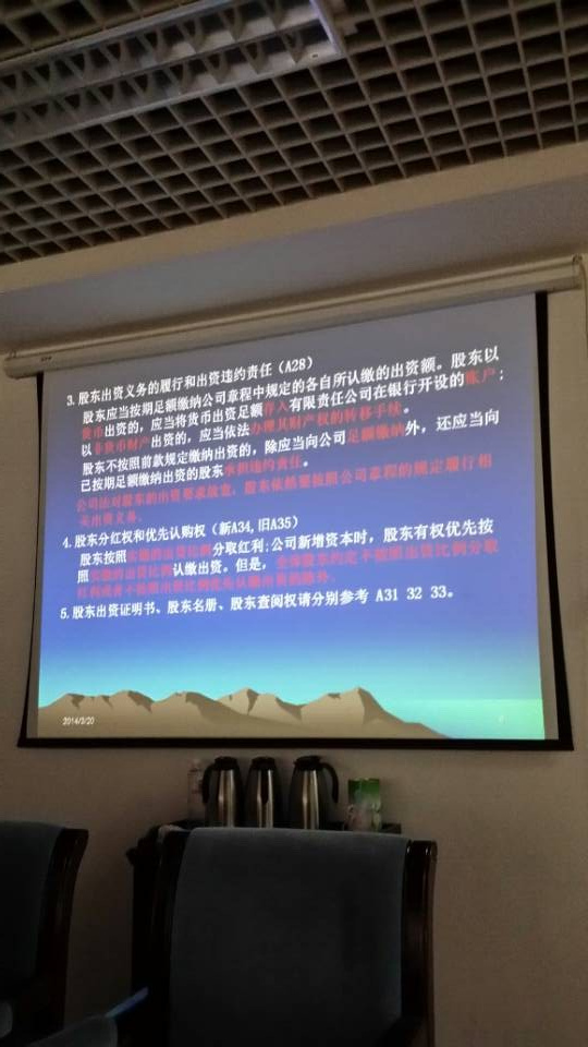 小组成员共同学习《中华人民共和国公司法》业务知识。主讲人渠帅就《中华人民共和国公司法》相关的定义、概念、区别等基本知识进行了讲解,并结合当前《海大控股公司章程》,使学员对公司成立的基本框架有了理论上的认识与理解,并对后期学习内容进行了铺垫和介绍。此次讨论学习为小组成员知识构成提供了新鲜的力量,并为后期的个人综合业务知识提升建立了一个新的方向。