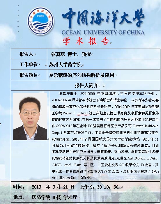 【学术报告】张真庆教授学术报告:复杂糖链的序列结构解析及应用